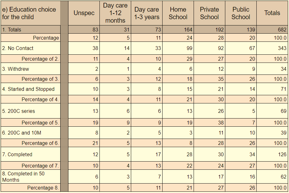 Table 1.5.e. below identifies the economic demographics of families who would choose HP. These variables are compared at each level of completion of the program. Income currency is USD.