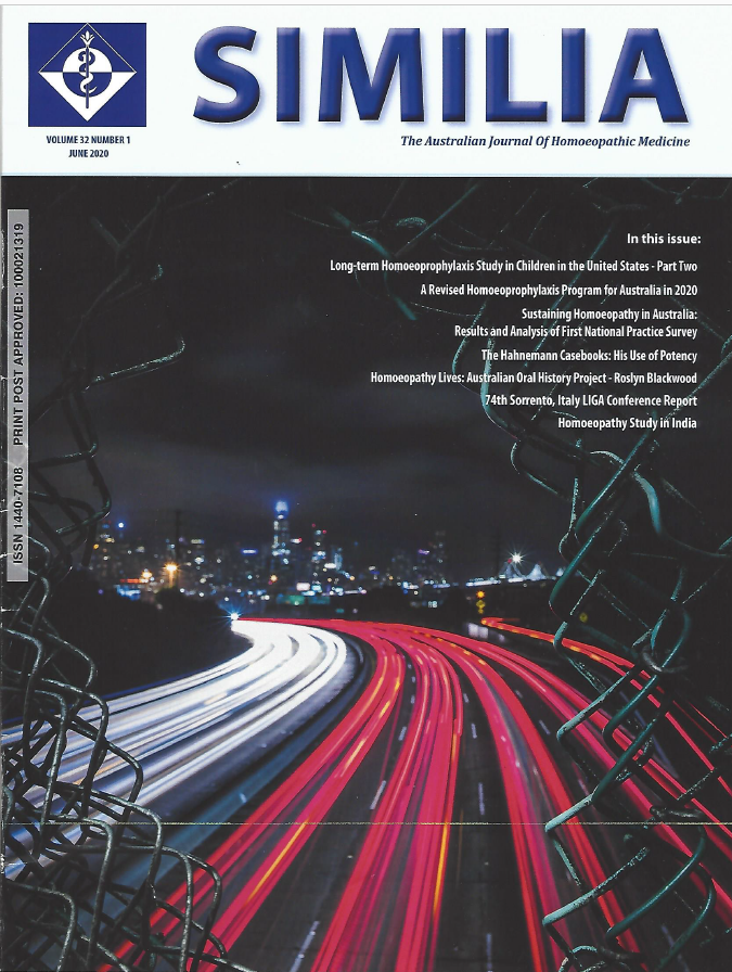 As published in Simila, Journal of The Australian Homoeopathic Association: Volume 32, Number 1. June 2020.